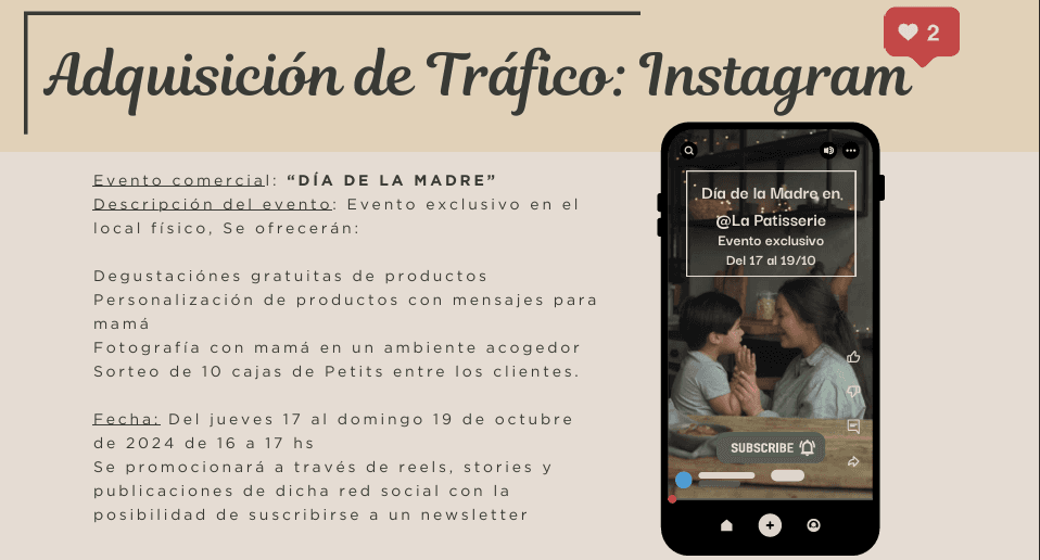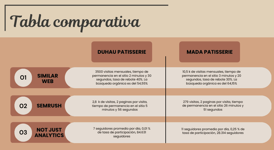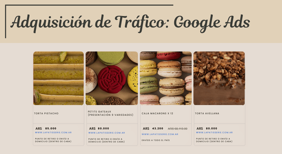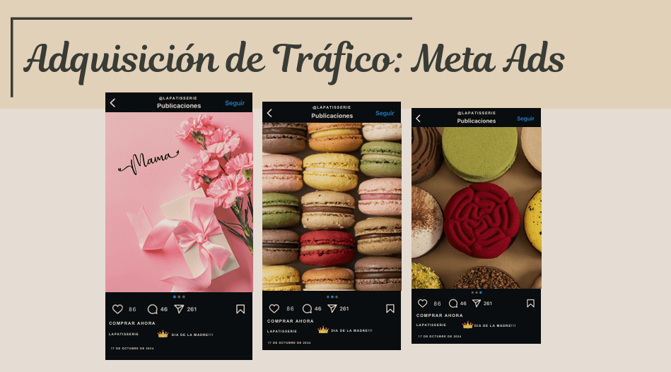 ◾ SOLUCIÓN: Se diseñó un sitio web funcional para la patisserie, enfocado en la experiencia de usuario e identidad visual, junto con un plan de marketing integral que incluyó análisis de competencia, definición de la propuesta de valor, estrategias de adquisición de tráfico y la organización de procesos de logística y pago.